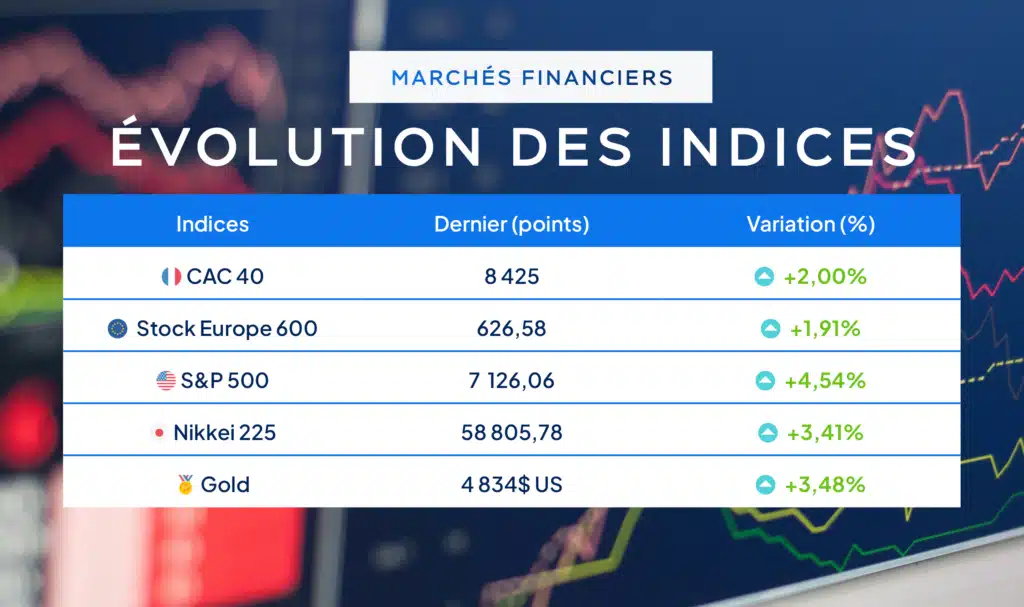 Côté géopolitique, les négociations entre Washington et Téhéran ont repris leurs droits après l’échec du week-end précédent. Trump a multiplié les déclarations volontaristes, évoquant un accord « très proche », tandis qu’Israël et le Liban acceptaient d’entamer des pourparlers directs, une première. Le détroit d’Ormuz a même brièvement rouvert vendredi, provoquant un plongeon du baril de Brent sous les 91 dollars et un rallye immédiat sur les marchés. Stellantis +6,40%, Safran +5,7 %, Hermès +5,2 %, Airbus +4,5 %, BNP Paribas +4,2 %.