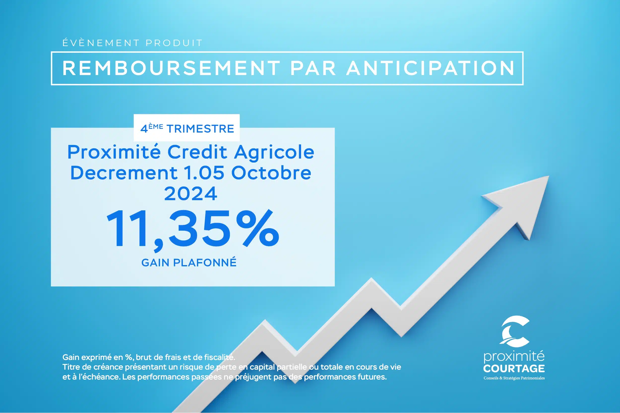 Rappel anticipé Proximité Credit Agricole Decrement 1.05 Octobre 2024